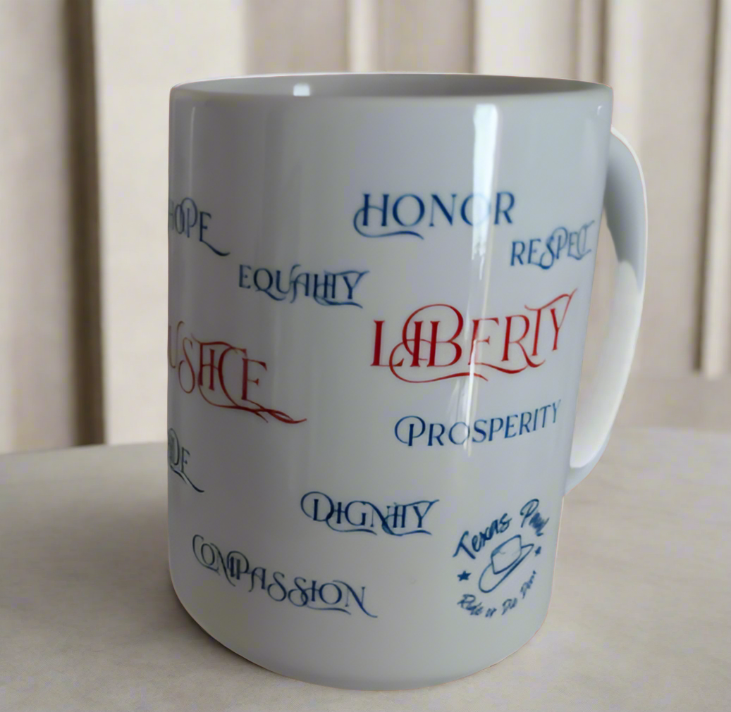 Experience the true essence of America with our TEXAS PAUL "My America" 15 oz ceramic mug. Embrace the words that define the heart of America. This is OUR America, and let's make these words the ones that come to mind when the world thinks of us. Handwashing