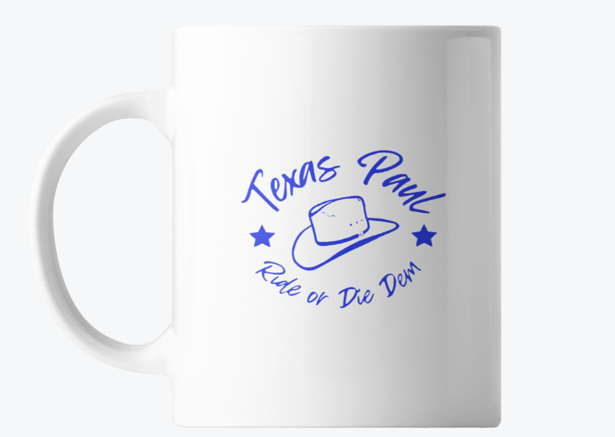 Double sided, 15 oz ceramic mug, FUCK TRUMP on side one; side two displays the Texas Paul logo. Handwash